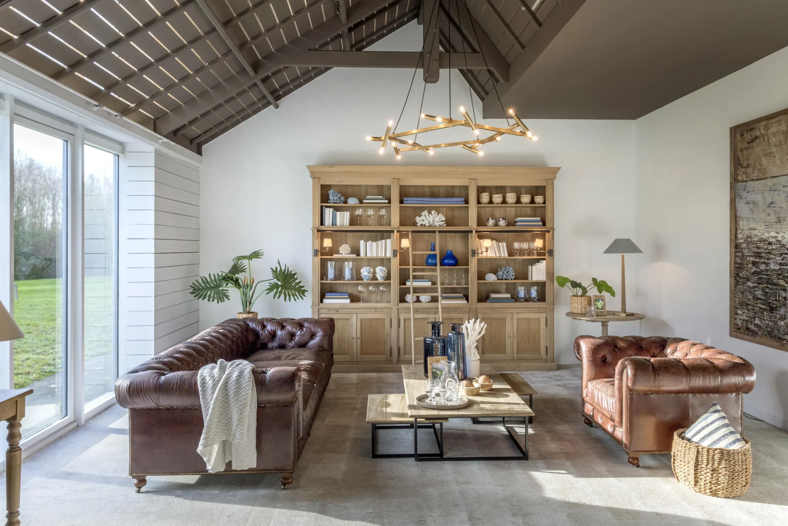 Flamant Balmore, Boekenkast, Verweerd Eiken, 3-Delig, Met Ladder